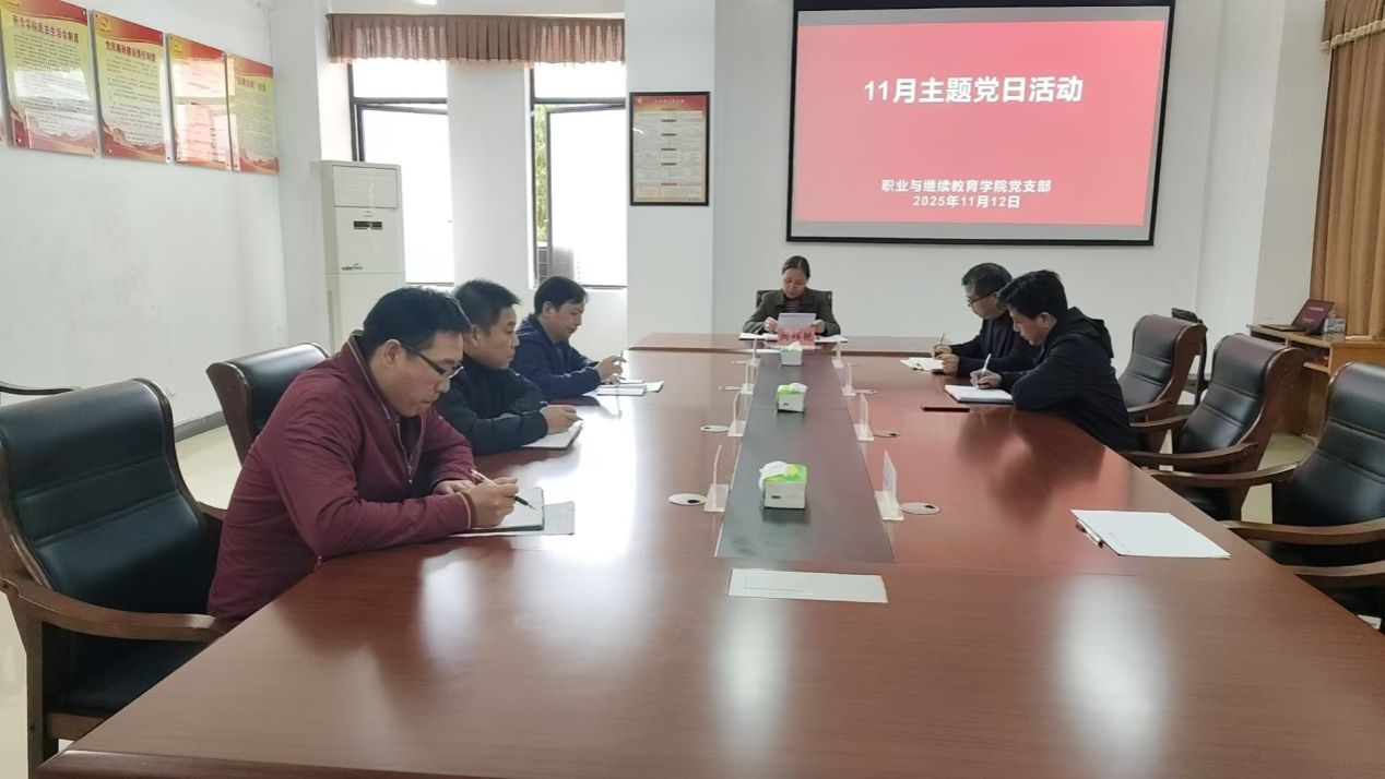 为持续强化理论武装,筑牢思想根基,11月12日上午,职业与继续教育学院党支部组织开展了十一月主题党日活动。本次活动严格遵循学习要求,以集中学习为主要形式,扎实深入地学习了近期重要精神与理论著作,引导全体党员提升政治素养,强化使命担当。