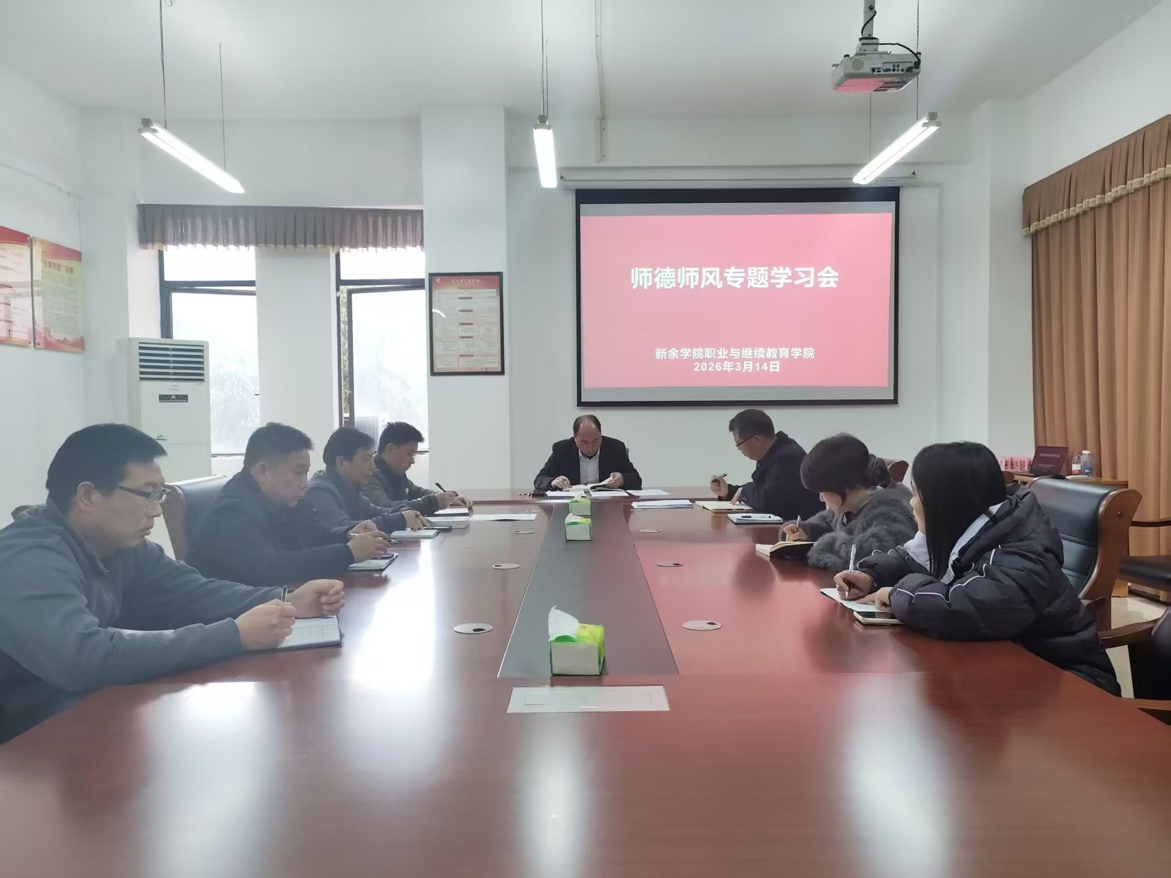 3月14日下午,职业与继续教育学院在会议室召开师德师风建设专题学习会。学院全体教职工参加会议,会议由学院院长田建鑫主持。